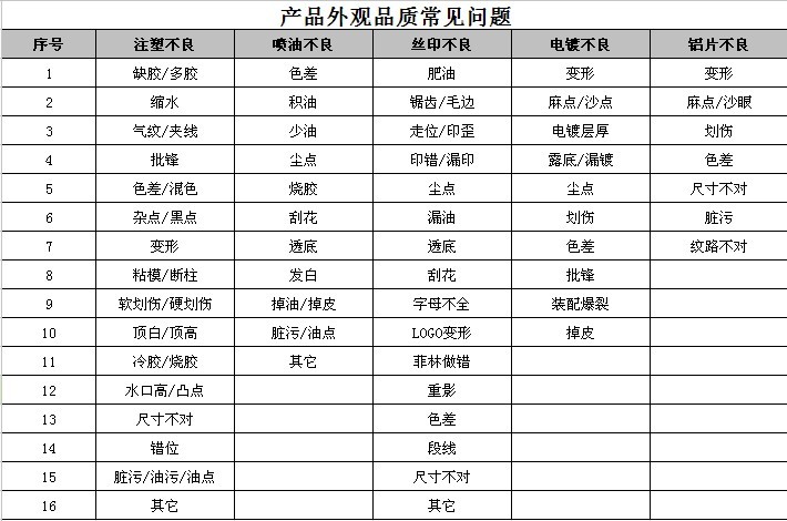 产品外观品质常见问题